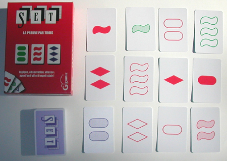 Trouver le plus rapidement un set de trois cartes parmi les douze cartes posées sur la table.