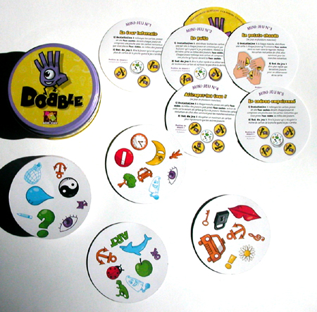 Être le plus rapide à découvrir le symbole commun entre deux cartes.