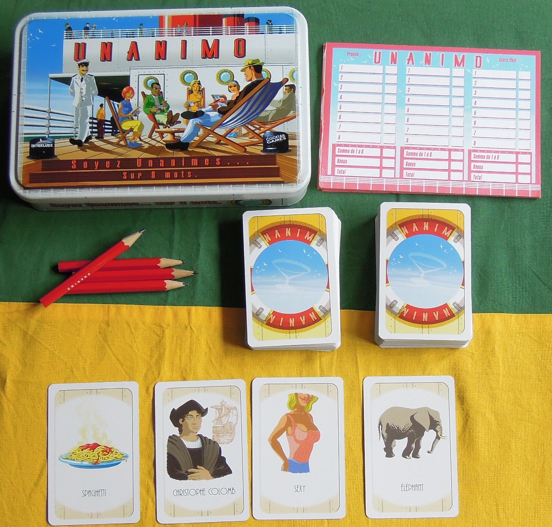 Chaque joueur prends un crayon et une feuille. On tire alors une carte « unanimo » sur laquelle est présent un dessin et un mot. Les joueurs doivent alors trouver et noter huit mots qui leur viennent à l’esprit en observant la carte. Il n’y a pas de limite de temps pour trouver. Si un ou plusieurs joueurs ne trouvent pas les huit mots, ce n’est pas grave. On arrête la manche dès qu’une majorité des joueurs ont finis.