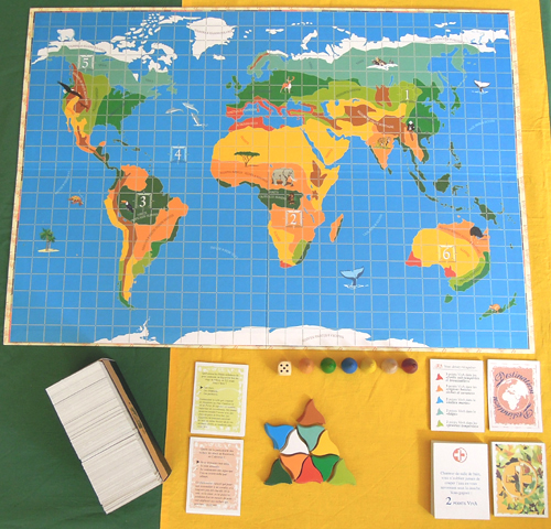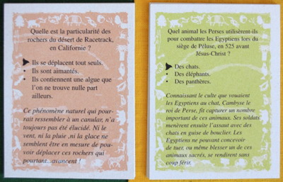Même si je ne tiens pas en grande estime les jeux de questions, je trouve ce jeu plus intelligent que d’autre du même type. On ne tourne pas en rond avec son pion, mais on se déplace où l’on veut sur le plateau, ce qui permet un brin de stratégie de déplacement pour arriver à nos fins. De plus, tous le monde répond à la même question. Cela évite les gaffes de certains joueurs qui veulent répondre à notre place. De plus, les réponses sont soit justifiées, soit commentées. J’ai vraiment plus l’impression d’apprendre que de répondre bêtement à une question. Ce jeu est beau et fabriqué avec des matières recyclées et recyclables. Le seul défaut est le rangement des pions « Viva » qui impose un rangement à plat du jeu et des déplacements précautionneux de la boite.
