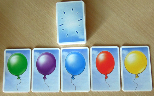 On distribue à chaque joueur 5 ballons de couleurs qui peuvent être identiques ou différents. Le joueur les pose en ligne devant lui.