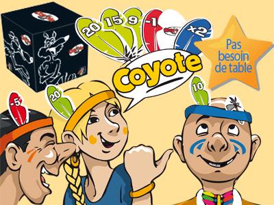 donner à son tour de jeu, un nombre probable de plumes présentes autour de la table ou de dénoncer la valeur dite par le joueur précédent. Le but est de ne jamais dépasser le nombre exacte de plumes présentes sur toutes les têtes (y compris la sienne). Le nombre annoncé doit toujours être supérieur à la valeur précédente à la façon des enchères. Dès qu’un joueur déclare à son tour de jeu « coyote », il dénonce la valeur annoncée par le joueur précédent. On arrête le jeu et on pose toutes les cartes de la manche sur la table face visible (on enlèves la cartes plume de sa tête). On compte alors le nombre total de plumes. Si la valeur annoncée est inférieure ou égale à ce nombre, la valeur est juste. Le joueur ayant dénoncé se prend un tomahawk. Si la valeur annoncée est supérieure, le joueur l’ayant dite se prend le tomahawk.