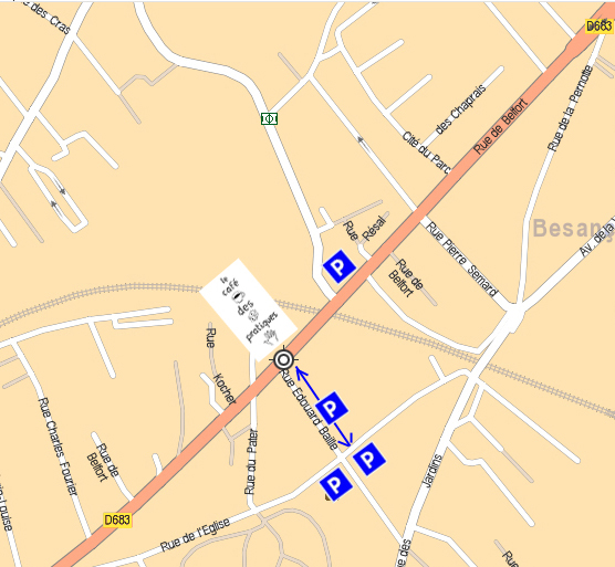 Le Café des Pratiques se situe juste devant l’école primaire des Chaprais, au niveau du feu. Plusieurs parkings sont disponible autour.