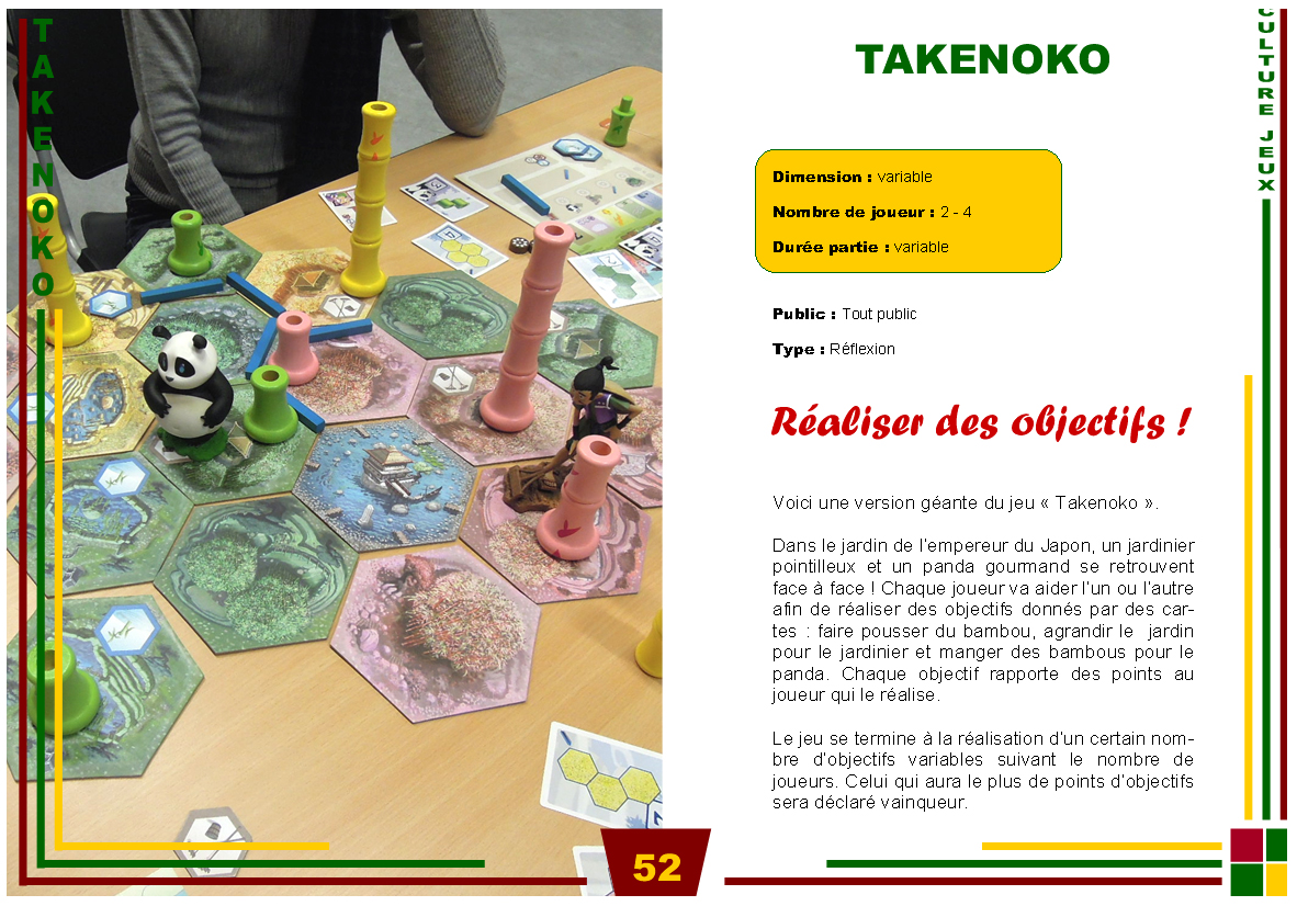 Je rattrape mon retard sur la mise en ligne des fiches de jeux géants. Cette semaine, j’en rajoute sept, mais bien d’autres sont en attente ! Voici les liens vers les fiches jeux.
