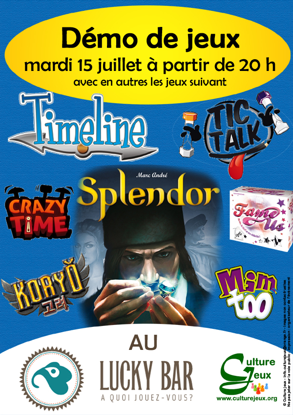 Cet été, venez découvrir ou redécouvrir des jeux sympas pour les vacances. Le mardi 15 juillet au soir, je serai là pour vous expliquer et animer la soirée sur des jeux sélectionnés pour être des valeurs sûr !