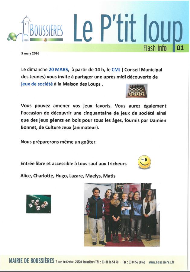 Dimanche 20 mars : Jeux à Boussières (25)